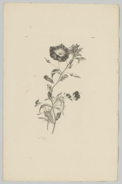 Curator: Ah, this delicate etching really captures a certain *something*, doesn’t it? The artwork is "En rose" by Michael Fosie, dating back to the 1740s. It's part of the collection here at the SMK. Editor: It’s beautiful, yes, but also surprisingly intense! The dark lines really give it weight. There's a tension between the softness we associate with flowers and the almost aggressive lines. I wonder, was the print media a response to a lack of ability to commission art, or to simply democratise consumption? Curator: That’s an interesting observation! Michael Fosie, in his role as engraver, translated an experience—the beauty of a rose—into a tangible commodity for the masses, you’re right. Though the sharp lines probably came down to precision needed to reproduce an artwork en masse! I imagine, a kind of technical necessity that created aesthetic, in effect. Do you think people cared about the artist? Or were they simply charmed by the natural motif, reproduced? Editor: Certainly. What I like here is the materiality – the etching and engraving process itself. The choice of this medium meant this artwork could reach a wider audience, moving it beyond the sphere of bespoke artworks, but even considering labour and resources needed for print...It shows that access isn’t easy even then. Curator: I think that's where the "en rose" really strikes me. Yes, on the surface, it's a botanical study, almost scientific. But look at the curl of the petals, the almost aggressive shading…it's about capturing the *essence* of the flower. Fosie sees something in that bloom beyond just a pretty picture; he feels it, perhaps as this commodity circulating…the idea and meaning travelling everywhere. Editor: The linear quality emphasizes process, don't you think? It exposes the meticulous craft that underpins even the most seemingly spontaneous artistic expression. So even in the age of realism, one can appreciate labour, effort. Curator: Absolutely! It makes one think of a certain rose from "The Little Prince." It might *appear* simple, yet all those lines are there to say so much and hold up and even project so much emotion. Editor: Indeed! It transforms into something new – still rooted in nature, but imbued with social life of baroque era.. Curator: Well, what a fruitful way to look at it! Makes me want to visit a garden or browse a shop.