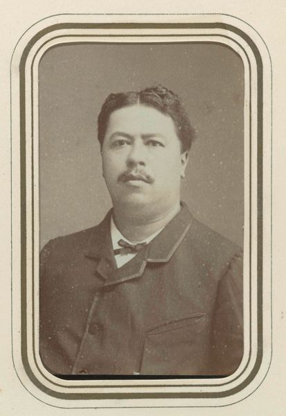 Here we see an anonymous portrait, probably a photograph, notable for its symmetrical composition and muted sepia tones. The subject is framed within an oval border, its repetitive lines serving to isolate the figure, directing our gaze intently towards the man's features. The photograph's composition adheres to a rigorous formal structure, but we might ask how this form shapes meaning. The man's prominent mustache and formal attire can be read as signs of a certain era's bourgeois identity. But there is also a stillness and formality in the photograph, suggesting a complex interplay between surface appearance and underlying social codes. Ultimately, this portrait, with its emphasis on form and structure, invites us to consider how such visual strategies communicate ideas about identity and representation. By analyzing its composition, tonality, and framing, we can begin to decode the cultural signs embedded within this historical image.