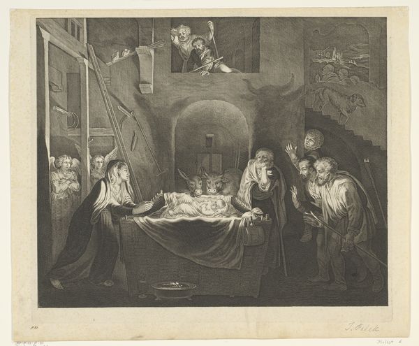 Pieter Bartholomeusz. Barbiers made this watercolor on paper, depicting a historical scene, sometime in the late 18th or early 19th century. The artist's choice of watercolor allows for delicate washes of color, which soften the dramatic moment. This technique, aligned with academic artistic practices, is used here in service of storytelling. Barbiers’s delicate handling of the medium is put to the service of depicting textures and details of costumes, as well as the interior architecture. Note the contrast between the refinement of the artistic technique and the turbulent, uneasy drama represented, a moment of potential violence. The figures are caught in their various emotional states, frozen in time thanks to Barbiers’ skilled hand. Paying attention to the way this image was made encourages us to expand our understanding of the artist's work. Recognizing it not just as a narrative, but as an artifact of skill and cultural value.