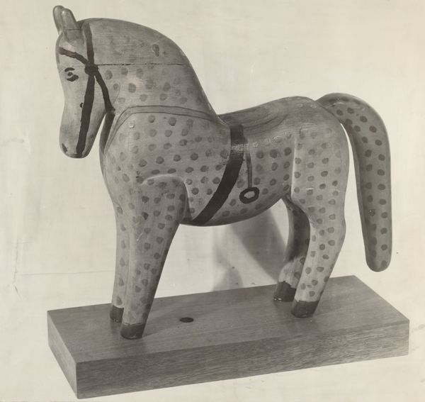 This horse weather vane was made by Herman Bader, sometime in the 20th century, from what looks like hammered metal. The metal work feels straightforward, solid, but not without a certain charm. I'm thinking about the way this piece was constructed, you can see the marks of the hand, the hammer. Each strike builds the form, gives it texture, and speaks to a process of making that is very direct. There’s a beautiful simplicity here, a sense of honest labor. The form of the horse is strong, but it’s not trying to be too realistic. The surface of the metal has a great, almost pebbled texture, and the way the light catches it gives the whole piece a kind of lively feel. I especially love the jagged mane. It feels like a series of spontaneous marks. This piece reminds me a little of some of the folk art sculptures. There's something deeply American about it. It's a reminder that art doesn't always have to be about highfalutin ideas. Sometimes it's just about making something useful and beautiful with your own two hands.