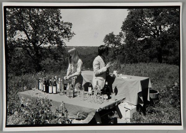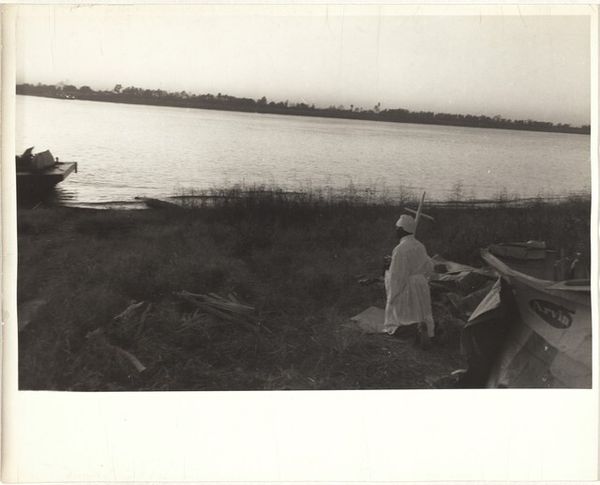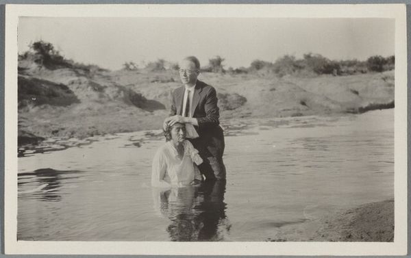 Editor: This is an untitled photograph by Bill Dane, probably taken at the Russian River in California. It shows two men relaxing by the water. There's a real sense of quiet intimacy in this scene. What stands out to you? Curator: It captures a very specific moment in American social history. Think about the accessibility of leisure, the cultural norms around public spaces, and even the presentation of the body. Who is allowed to relax like this, and where? Editor: So you're saying the photograph isn't just a casual snapshot? Curator: Precisely. Dane, consciously or not, is documenting a particular slice of society. The casualness is part of the performance, reflecting certain privileges and social expectations. Editor: That gives me a lot to think about. I never considered the politics of a day at the river!