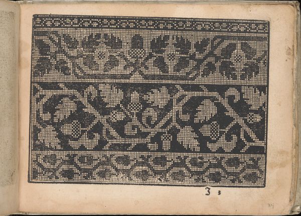 This is a page from ‘New Artificial Pattern Book’ by Bernhard Jobin, made in the late 16th century. The intricate woodcut print showcases a design intended for embroidery or lace-making, reflecting the societal values placed on domestic skills during the Renaissance. The designs of intertwined floral and geometric motifs speak to the period's aesthetic sensibilities, but also to the complex social fabric of the time. For women, these pattern books provided not only a creative outlet, but also reinforced their roles within the domestic sphere. The skills of embroidery and lace-making were not merely decorative; they were a form of cultural expression and economic contribution, albeit often undervalued and confined. As we look at this page, it reminds us of the artistry and labor of countless women whose stories are often unseen in historical narratives, yet whose creativity shaped the visual landscape of their time. It invites us to consider the intersection of gender, artistry, and everyday life in the Renaissance.