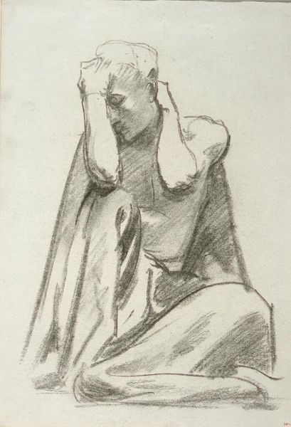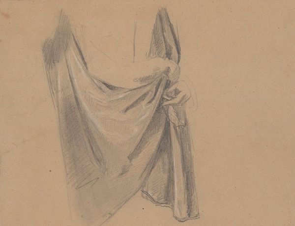 Editor: Here we have John Singer Sargent's drapery study for "Israel and the Law" at the Boston Public Library. It's a charcoal drawing, and I'm really struck by how dynamic and almost sculptural the fabric appears. What historical context might inform this study? Curator: Well, Sargent’s murals for the Boston Public Library were a major public commission. Studies like these, depicting fabrics, served as crucial preparatory work, but also reflect a broader trend in academic art. How do you see the "law" reflected in the drapery itself? Editor: I hadn’t considered that! Perhaps the way the fabric is structured and defined, suggesting order and form? Curator: Exactly. And how might the choice of drapery, often associated with classical sculpture, connect to ideas about justice and tradition that were being promoted in public spaces at the turn of the century? Editor: That's fascinating. It’s not just about artistic skill, but also about embedding cultural values. Curator: Precisely. Sargent was consciously participating in shaping public perception through his art.