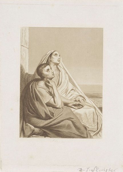 This engraving of a "Seated Woman in Contemplation with Book" was created by an anonymous artist. The image presents a woman in a state of deep reflection, her posture suggesting introspection. She is seated, and her gaze is directed downwards, with a book resting on her lap. The presence of books on a shelf in the background, along with the book in her lap, emphasizes the theme of knowledge and contemplation. The artist uses delicate lines to create a sense of depth and texture. The figure's draped clothing adds a layer of complexity, while the overall composition creates a sense of stillness and quietude. The artwork invites us to consider the role of women, knowledge, and contemplation in society, as well as the ways in which individuals seek meaning and understanding through intellectual pursuits. The emotional depth of the piece is emphasized by the woman's posture and expression, suggesting a personal and introspective experience.