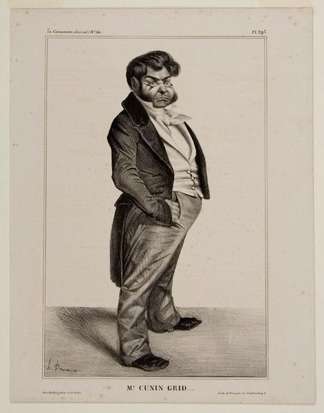 Editor: Here we have Honoré Daumier's "Mr. Keratr," a lithograph print. I notice the stark contrasts in shading, and wonder about the choice to depict this figure with such exaggerated features. What story do you think the materials and production tell? Curator: I think Daumier is making a direct statement about the socio-economic structures of his time. Lithography was a readily available, reproducible process, allowing for mass consumption of imagery. It democratized art, but how did this impact the perception and value of labor, both the artist's and the subject's? Editor: That's fascinating! So, the medium itself is part of the message, reflecting on accessibility and potentially critiquing class dynamics through its very means of production? Curator: Exactly. And consider the use of caricature - how does the artist’s labor in exaggerating Mr. Keratr’s features comment on the subject’s own social position and perhaps perceived excesses? What do you think? Editor: I didn't consider it that way before, but now I see that the choice of materials and the method of production are essential to understanding the artwork's critical perspective. Curator: Indeed.