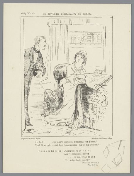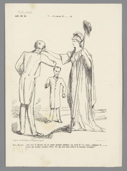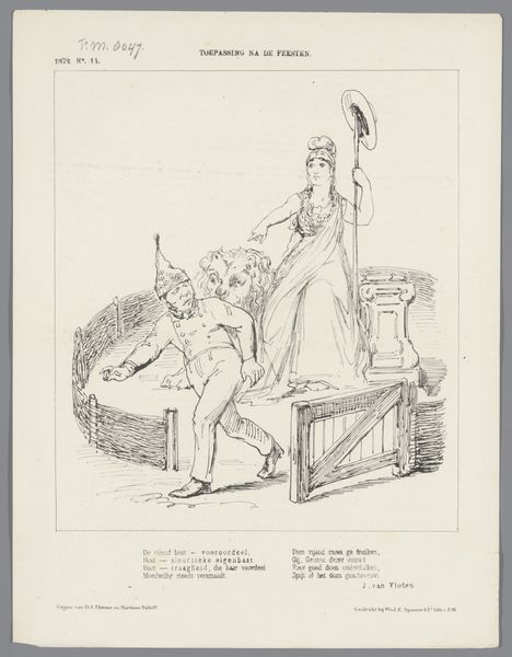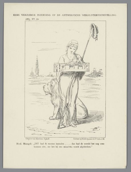 This is Johan Michaël Schmidt Crans’s 1869 cartoon about the British takeover of the Dutch Gold Coast. It offers a window into the complex colonial history of the 19th century. The cartoon depicts a woman, symbolizing the Netherlands, standing before a map of Guinea. Her downcast gaze and crossed arms suggest resignation. The dog beside her seems to mirror her melancholic mood. The text translates to “no wreckage... and what is the point of more sacrifices by our people, it is better to leave that country to its fate.” This image reflects a pivotal moment when the Netherlands ceded control of its Gold Coast colony to Britain, a decision tinged with disillusionment. Crans captures the emotional weight of this transition, inviting us to reflect on the human cost of colonial ventures.