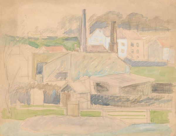Curator: Here we have Alexandru Ciucurencu’s "Industrial Landscape - Galati," painted in 1962 using oil paint. Editor: My first thought is that it feels so subdued, despite depicting what could be quite a harsh subject—an industrial area. There's a sense of almost quiet melancholy hanging in the air. Curator: Yes, and that subdued atmosphere arises from the considered composition. Note how the industrial buildings are reduced to geometric forms and how their arrangement in the picture plane creates a kind of spatial harmony. The materiality, that impasto, lends the subject tactility. Editor: I think that melancholic air probably springs from more than formal arrangement. The mid-20th century was such a period of intense industrial growth, and this rendering—those slightly faded colors, the blocked buildings that seem somewhat drained of life—can’t help but evoke a sense of environmental impact and loss of the human spirit within the drive for industrial advancement. Curator: While I appreciate your reading, I also think there’s merit in noting that Ciucurencu avoids any sharp social critique here. His brushstrokes and compositional choices maintain an element of detached observation, a visual ordering of the industrial subject matter into planes of form. It remains aesthetically balanced and avoids explicit socio-political commentary. Editor: Perhaps, but such "balance," given the realities of that period, is itself a statement. Choosing to paint this subject matter at all places Ciucurencu within the broader debates surrounding modernization and progress that pervaded Romanian society at the time. The seemingly neutral gaze still holds traces of these debates. Curator: I see your point. What might at first appear as purely formal considerations—color, shape, composition—are never truly divorced from the context within which they were created. Editor: Exactly! An artwork breathes, exists, within these layers of meaning, intention, and social impact, doesn't it? Curator: Yes. So even a landscape, presented seemingly neutrally, like this can offer multiple readings when viewed through different lenses. Editor: Which is precisely why these historical echoes render an artwork all the more powerful to contemporary audiences.