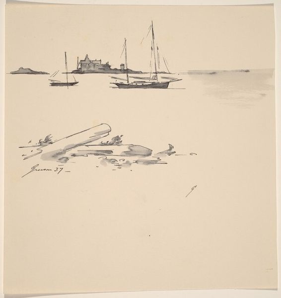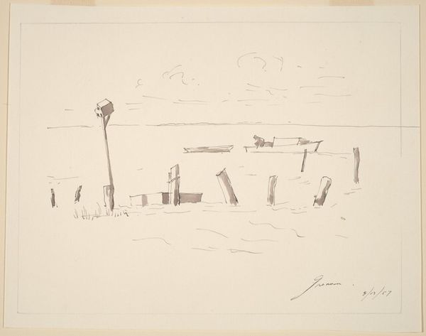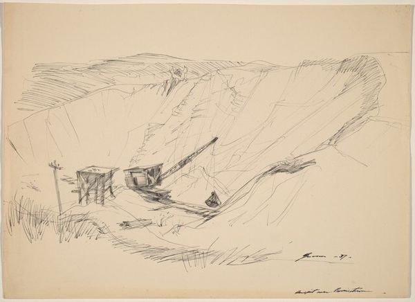 Donald Carlisle Greason made "Cranes and Dunes," an ink drawing on paper, sometime in the 20th century. Greason was a painter and printmaker known for his landscapes, particularly of California. In this sketch, the industrial meets the natural as cranes and dunes coexist on the paper. While landscape art has a long history of representing nature as sublime and untouched, here, Greason subtly acknowledges the impact of industry on the environment. This piece resonates with the time it was made, during a period of significant industrial expansion. The contrast between the hard lines of the cranes and the soft curves of the dunes evokes a sense of tension, a visual representation of our complex relationship with the natural world. The sketch is simple, yet thought-provoking. It encourages reflection on the changes humans impose on our surroundings, and the emotional weight of that impact.