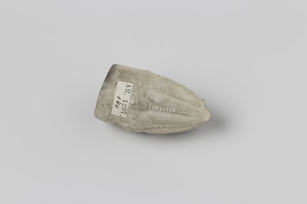 Curator: This object, dating from 1740-1780, is called "Pijpenkop" – a pipe bowl. Crafted in earthenware, it’s a small sculptural piece. Editor: Huh, first thought? A fragile, earthy echo. The off-white has this aged, almost spectral quality, like something unearthed after centuries. What's striking me most is the textural contrast, smooth near the opening then this, intricate sculpting at the bowl. Curator: Exactly. Earthenware offers itself nicely to sculpting, doesn't it? One wonders what stories it could tell if it had a tongue. Imagine all the gatherings, conversations, perhaps even secrets it absorbed. Given the era, who might have owned this, and where? Were they discussing enlightenment ideals, colonial exploits, or simply sharing stories? The history of tobacco and pipe smoking is fraught. Editor: Ah, yes, precisely, the fraught history! Not just leisurely puffs of fragrant smoke, right? But a commodity enmeshed in colonization, trade routes built on exploitation. Is it possible, perhaps, that the details of the sculpted motifs on this particular pipe may give us insights into the worldview or ideologies of the historical smokers? Do you know, could this form have been common or even specific to the social classes that it catered to, or maybe specific trade routes it took in that historical period? Curator: That's brilliant, making those connections between design, owner, and world events. We're left pondering what the pipe itself may mean, what place smoking had within its owner's life. It's a curious portal to the past. It even looks like a curious artifact from another planet with this unique and yet weird form factor! Editor: Absolutely. We are so often taught about powerful kings, the rich upper-classes in school, but what this pipe points to are the quotidian ways power operates. How our rituals—and even our simple pleasures—have their own subtle politics that need uncovering. It all calls to reflect upon our position in global trade, not only now but what has been built by these structures from back then, and reflect upon not repeating what has been done. Curator: Nicely stated, both humbling and challenging us to examine our comforts more critically. The echo of the past… still resonating, through something as seemingly simple as this pipe. Editor: Indeed. And perhaps inspiring us to create new narratives of equity and justice with our own actions, making it better and more respectful, for generations to come.