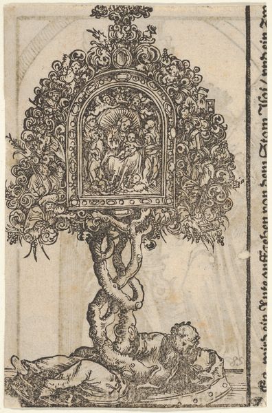 This print, by Lucas Cranach the Elder, is a woodcut on paper. It was likely produced as part of a set of images, intended to showcase the vast collection of religious relics held in Wittenberg, Germany. The process of woodcut is key to understanding the image. It begins with a block of wood, into which the artist carves a design. Ink is then applied to the raised surfaces, and the image is transferred to paper. Look closely and you will see the characteristic lines and textures created by this process. The bold, graphic quality of the woodcut lends itself well to mass production, enabling the wide distribution of images like this one. In this context, it’s worth remembering the social and religious upheavals of the time. Cranach was a contemporary of Martin Luther, and his art often reflected the changing religious landscape. The mass production of images like this one played a role in the spread of new ideas, challenging the established authority of the Catholic Church. It’s a reminder that art, craft, and design are always intertwined with the social and political forces of their time.