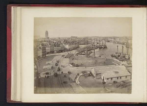 Editor: So, this is "Gezicht op de haven van Genua, Italië," a gelatin-silver print by Alfredo Noack, likely from between 1858 and 1893. There's such incredible detail – the water, the rigging on the ships – but the tone makes it feel a bit… melancholy. What do you see in this photograph? Curator: The melancholic tone speaks to the transient nature of ports themselves; they’re sites of comings and goings, perpetually caught between arrival and departure. What’s remarkable here is how Noack captures a moment in Genoa’s evolution through its port. The harbour isn’t just a place; it’s a symbol of Genoa’s relationship with the world, a connection forged through maritime trade. Do you notice anything particularly telling about the arrangement of the ships? Editor: There's a real mix – some look like massive trading vessels, others smaller, maybe for fishing? Curator: Precisely. It indicates a complex economic structure, relying on both local industry and global exchange. Ships themselves become symbols of aspiration and perhaps, risk. They represent connection to the rest of the world but could vanish at sea. Also notice the relatively unpopulated space along the harbor. How might we relate the ships and land to each other in this photographic "memory"? Editor: Hmmm, you're right...It makes the viewer really consider how interconnected the city and harbor are, they both grow together, but each ship also leaves its own void in the empty space. Curator: Indeed. It's almost a memento mori—the ships suggest journeys and destinies, the water an uncertainty that pervades even this still image. Understanding Genoa's deep connection to its port and the ships that filled it allows us a poignant view of 19th-century identity. Editor: That's given me so much more to think about; the photograph is communicating much more about that society. Thanks!