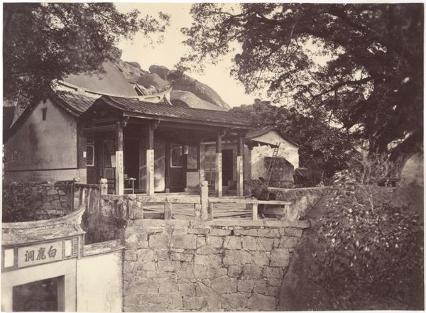 Editor: So, this is John Thomson’s "A Pepohoan Dwelling," taken around 1868. It’s a fascinating print photograph. The texture of the woven walls and the thatched roof are really striking, almost tactile. What do you make of the visible means of construction depicted here? Curator: Well, the rough-hewn timber, the locally sourced thatching, the very *making* of this dwelling—it speaks volumes about the community’s relationship to its environment and its economy. Consider the labor involved. Who built this? How did the materials shape the structure and, by extension, the lives within? Editor: It looks like they built it from materials that are accessible around the dwelling and affordable. Does that simplicity reinforce or challenge traditional distinctions between art and craft? Curator: Precisely. Thomson, a Western photographer, is capturing, and arguably exoticizing, an image of "native" life. But consider the agency inherent in the construction of this home. This dwelling is a product of skill, available materials, and communal effort, blurring those lines. Are we looking at "art," or are we observing vernacular architecture elevated by the act of documentation? Editor: I guess the Orientalism style invites that external gaze and complicates the appreciation of the labor and resourcefulness on display. Are we meant to marvel at the dwelling, or ponder the socio-economic realities that shaped it? Curator: Thomson’s lens shapes our perception, but the materiality of the dwelling demands our attention. What can the structure itself reveal about the Pepohoan people's social organization, their agricultural practices, and even their beliefs? The baskets, the placement of the home... these all have meaning. Editor: That’s true; thinking about it from a material perspective really reframes the way I see the photo. The photograph is more than an image: it’s evidence of a process and an interaction between people and place. Curator: Indeed, and it reminds us to look beyond the aesthetic to the tangible conditions that give rise to art and life itself.