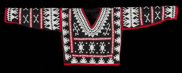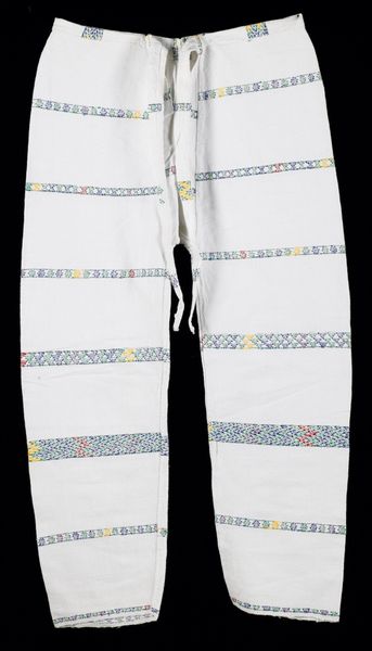 Editor: Here we have a woven textile artwork titled "Man's Ceremonial Shirt" created in 1998 by Maya artists. It's made from cotton. I find its simple yet colourful design quite appealing. What do you see in this piece that stands out? Curator: Well, the "Man's Ceremonial Shirt" immediately strikes me with its rich symbolism embedded within the geometric patterns. Each colour and motif likely carries specific cultural weight, perhaps relating to status, lineage, or spiritual beliefs. Can you see how the repetition creates a visual language? Editor: I can see the repetition, yes. It's very rhythmic. But how do we even begin to decipher that visual language? Curator: Consider the context. Ceremonial clothing often serves as a potent symbol of identity. We could explore similar Maya textiles to identify recurring motifs and their established meanings. What feelings do these repeating patterns evoke in you? Does it call forth cultural memory of clothing of significance you have worn or seen? Editor: I see what you mean! I suppose the act of wearing such clothing then becomes a sort of embodied ritual. The visual patterns become a mnemonic device. Curator: Precisely! And think about the cotton itself, a natural fiber intimately connected to the land and the Maya people. Its very materiality holds significance. This piece isn’t merely decorative; it's a complex layering of cultural meaning. Editor: That's amazing to consider. I originally just saw a shirt, but it's clearly a whole system of meaning woven together. Curator: Exactly. By examining the symbols, materials, and context, we gain insight into the rich cultural narrative embedded within this garment. Editor: Thanks, that really broadens my perspective on how to read textiles and their historical significance. Curator: My pleasure. Remember, objects speak if you learn how to listen.