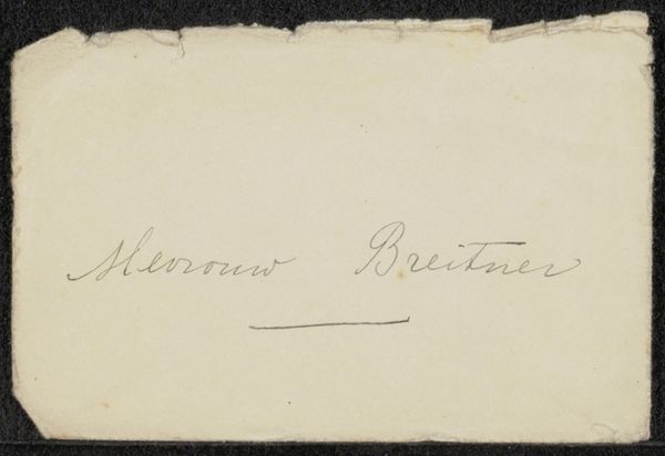This visiting card was made by Marinus van der Maarel for Philip Zilcken. I love how the elegant script sprawls across the card’s surface, a deliberate act of formal display. It's got this kind of creamy, off-white ground, like old paper that’s been holding secrets for ages. The ink, a delicate, faded black, gives it a ghostly quality, a whisper from the past. The cursive almost dances, each letter carefully rendered with a flourish. Notice how the loops of the 'v' and 'd' in 'van der Maarel' loop and curve. It’s as if the artist is not just writing a name, but performing a kind of dance across the page, an echo of a formal greeting. It reminds me of Ed Ruscha's text based works, in that they both elevate simple text to a form of art. What seems like a simple gesture carries so much weight, a gentle nod across time, full of understated elegance.