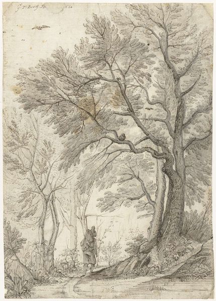 Editor: This is John Laporte’s "Park Scene with Deer," created sometime before 1839. I’m really drawn to the texture created by the pencil strokes. What can you tell me about it? Curator: Looking at this work, I'm struck by the way Laporte uses graphite. Its accessibility democratized landscape art, making it more about the act of seeing and sketching than about expensive pigments and laborious oil painting. Editor: So, the choice of material influenced who could create art? Curator: Precisely. And consider, too, how the drawing's reproducibility through prints would have expanded its audience, further integrating art into everyday life. Editor: That's fascinating! I hadn't considered the social impact of the materials themselves. Curator: Seeing art as a product of material conditions opens up new avenues for understanding its meaning and impact.