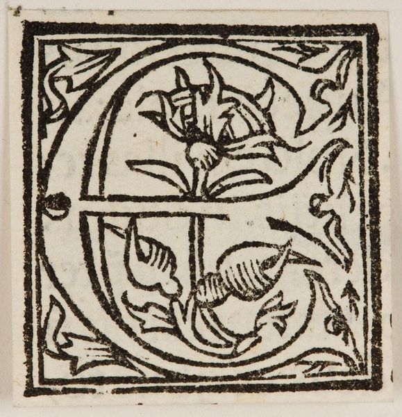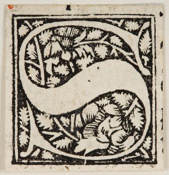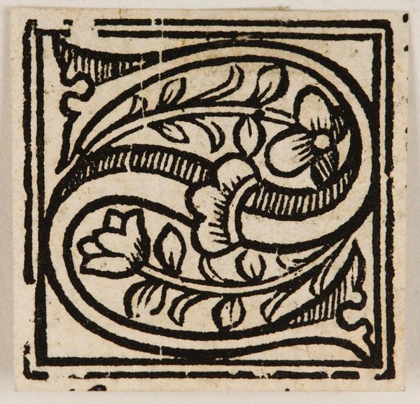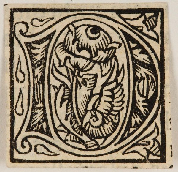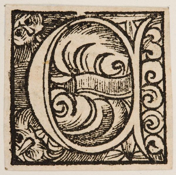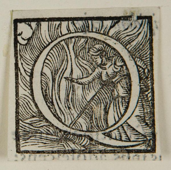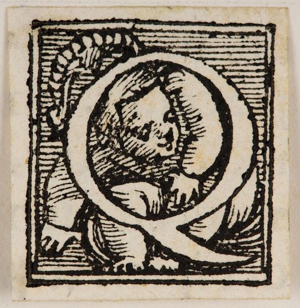 Curator: This is "Letter Q" by Hans Holbein the Younger, held at the Harvard Art Museums. It’s a woodcut, part of a series of alphabet initials. Editor: It's so playful! A wrestling match inside a letter... that's a quirky take on ornamental design, isn't it? Curator: Absolutely! Consider the placement of the figures within the 'Q.' It transforms a simple letter into a vibrant scene of human activity. Editor: There's also something inherently symbolic about containment here. The letter not only frames the action but almost seems to dictate its boundaries, creating a mini-drama with its own rules. Curator: Indeed. Holbein’s work reminds us that even the smallest, most functional images can be infused with cultural meaning and expressive power. Editor: It’s a reminder that design, even at its most basic, can tell a story.