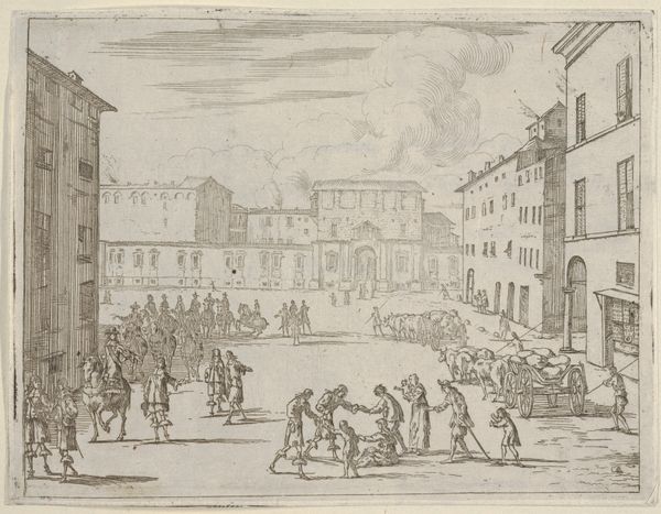 Giuseppe Zocchi made this drawing of the Piazza San Marco in Florence on paper sometime in the mid-18th century. It captures a meticulously ordered space, reflecting the values of the Enlightenment era in Italy. The architectural precision and rational layout of the piazza speak to a desire for social order and control. Florence, during this period, was experiencing economic and political shifts, and the ruling elite sought to maintain stability through displays of power and regulated public spaces. Drawings like this one served not only as documentation but also as a form of idealized representation, reinforcing the authority of the ruling class through the depiction of a harmonious and well-regulated urban environment. To truly understand this drawing, historians delve into Florentine archives, studying urban planning documents, social histories, and the biographies of those who commissioned and consumed such images. The meaning of art is always embedded in its social and institutional context.