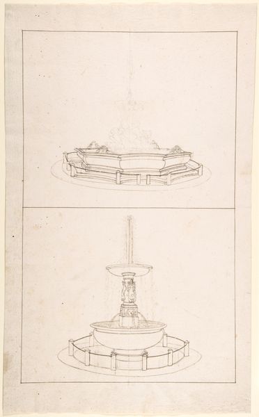 This drawing presents designs for urns, rendered with graphite. The urn, a vessel, carries profound symbolism dating back to antiquity, often associated with funerary rites. The design includes handles, a decorative element that can be traced back to ancient Greek amphorae, and festoons with circular decorations on the base. This symbol of commemoration appears in varying forms, and we see its recurring presence in many cultures. The imagery of containing and preserving links the vessel to themes of memory and the afterlife. Much like the gestures of lamentation, the urn is one of many powerful formulas charged with cultural memory. Consider its psychological resonance: the urn elicits introspection on mortality and remembrance, engaging us on a subconscious level. The cyclical nature of this symbol's evolution highlights how humans express their deepest emotions, continuously reshaping our understanding of life and death.