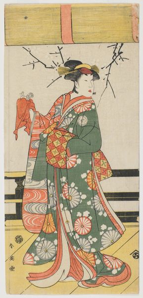 Katsukawa Shun'ei created this woodblock print depicting the actor Sawamura Sojuro the 3rd. Kabuki theater in Japan was a vibrant stage for exploring complex social dynamics. In this print, we see a famous actor in an “onnagata” role, where men play women. Consider the tensions here: male actors embodying female characters who may have been marginalized in society. These theatrical performances sometimes challenged rigid gender norms, offering a space to reflect on identities. The pleasure-boat setting adds another layer, hinting at the floating world of entertainment and perhaps even the transgressive behaviors tolerated within those spaces. Japanese woodblock prints were an integral part of the cultural landscape, reflecting the desires and fantasies of their audience. These images both reinforced and subtly questioned the social order of the time.