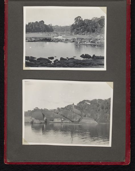 These two photographs of the Surinamerivier were made at an unknown date by an anonymous artist. What strikes me here is the layering of depth. There is the picture plane, the paper that is itself placed on a grey page in an album. These rectangles frame a depiction of water, but the flat surface of the photo, the grayscale palette and crisp tonal range, remind me of the way Gerhard Richter uses photography as source material, blurring it in paint to call attention to the space between reality and representation. The dark areas read as solid, and flatten the image, but look closely and you'll see the trees are full of movement. The anonymous artist here captures the river as something both monumental and fleeting, a conversation between earth and water that asks us to consider what it means to observe and be changed by the world around us.
