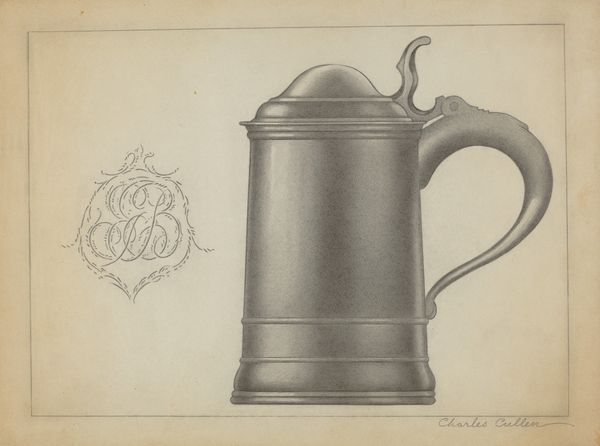 Editor: This is Charles Cullen's "Pewter Tankard," created around 1936 using pencil and graphite on paper. It’s a realistic rendering, almost photographic in its detail, but something about it feels... melancholy, maybe? What do you see in this piece, beyond its apparent simplicity? Curator: Beyond the skillful realism, I see a reflection of the interwar period's anxieties and shifting social landscapes. Consider the tankard itself – a utilitarian object elevated to art. Why? Perhaps it's a commentary on the working class and their diminishing access to leisure and community spaces amidst economic hardship. The artist, by focusing on such an everyday object, directs us to reflect on value. Editor: That’s interesting. So, you're saying the choice of subject matter is a political statement, in a way? Highlighting a class of people? Curator: Precisely! It’s about power dynamics and visibility. During this time, what objects and whose stories were considered worthy of representation? By portraying this seemingly mundane tankard with such care, Cullen subverts those hierarchies and invites us to question whose experiences matter. Moreover, we could consider how this reflects masculinities of the era: is this celebrating or critiquing the working man? Editor: I hadn’t thought of it like that. The detail almost romanticizes the object, but also maybe points to an absent figure? I do notice how the rendering of the handle itself has a graceful, almost baroque quality, quite distinct from the more utilitarian tankard body. It adds tension, right? Curator: Exactly! That tension is key. Cullen is using realism to both represent and critique the societal conditions of his time. The artwork subtly prompts viewers to reconsider what constitutes ‘art’ and whose lives are deemed valuable subjects for artistic expression. How do you think it resonates today? Editor: It definitely makes me think about who is missing from the artistic canon and the everyday objects that hold stories we often overlook. It is a somber statement. I hadn't initially connected those details, so thank you for bringing them to my attention. Curator: It is so vital to keep the conversation going, in relation to works like these. Hopefully our listeners will now feel the urge to dive in and add to that narrative, to challenge power structures in their own settings, in their own unique way.