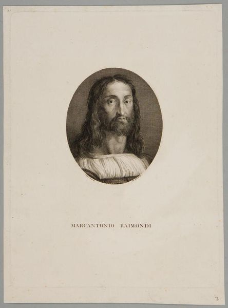 Curator: It strikes me as quite serene, almost stoic. Is it just me or does this portrait emanate a contemplative aura? Editor: Indeed! What we're looking at is a print identified as "Portret van Giorgione," dating back to somewhere between 1827 and 1854. The artist behind this engraving is Nicolas Maurin. It captures Giorgione, the enigmatic Renaissance painter. The realism employed is quite striking. Curator: The clothing is particularly interesting; the pleats have such presence. Do the garments reveal something of the sitter's status or position? Editor: Certainly. Costume always signifies social placement and ideology. The Renaissance style depicted hints at a reverence for the artistic legacy of figures like Giorgione. Such works helped construct an image of artistic genius—vital in the burgeoning art market and academy. Curator: It feels like more than just documentation, though. There’s a quietness to the gaze that seems intended to evoke a sense of artistic depth. His clothing seems draped and his eyes heavy. Editor: And the reproduction aspect bears thinking about. Engravings made art accessible to a wider public, shaping popular understanding. By creating repeatable images of these artist 'celebrities' their social status also became repeatable, mobile. Curator: A cultural artifact in itself. Each line contributes to constructing an artist figure we continue to remember, debate, and reflect upon today. Editor: Precisely. Consider too, that the medium is an engraving – not simply a sketch. The decision highlights permanence, solidifying Giorgioine's position within the visual culture. It underscores his lasting legacy. Curator: It makes you consider the original portrait the print may be based on—or even whether an "original" existed at all. Perhaps this is Maurin's creative imagining, and nothing more. Editor: Right. And regardless, that choice carries consequences for how the artist is consumed and situated within an artistic canon. This image doesn't only portray a figure, but acts as a symbol of artistic veneration and marketability of the figure. Curator: So this quiet face sparks a larger conversation, echoing how cultural images resonate through history. It offers continuity. Editor: A fitting final thought. Looking at the world with intention opens doors!