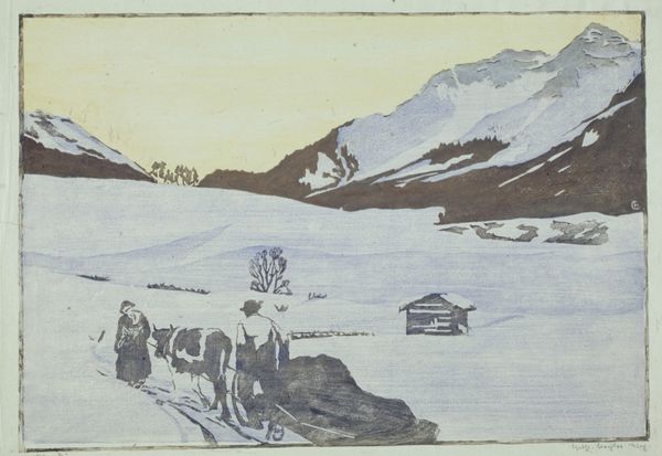 Curator: Looking at Ella Fillmore Lillie's piece, I immediately feel the stark hush of a winter's day, that moment when everything seems suspended. The stillness of it is almost palpable. Editor: Exactly! "Cradled in the Hills," created with pencil and graphite, captures that profound quiet so well. What’s striking is how she renders this vast landscape with such intimate detail. Curator: There's something about the light here. Or the lack thereof. It's all greys and whites, with barely a hint of sun. It's bleak, sure, but there's also a stark beauty in that restraint. Makes me think of a whispered secret. Editor: Visually, winter often symbolizes endings, but also purification. Notice how the village nestled in the valley is centered almost like an emblem. Lillie has framed that with very distinct trees, drawing us in to find shelter perhaps, maybe something familiar. It reads almost like a scene in a snow globe. Curator: Shelter definitely resonates. And the path leading into the village, half-covered in snow…it feels less like an invitation and more like a promise. One that suggests there are stories hidden behind those windows. Editor: Absolutely. Villages hold immense cultural significance as a visual representation of communal identity, human connection and simple living, especially given the realism in this piece. The church spire as well seems to almost pierce the somber sky. A clear marker of faith that grounds the viewer in place, but then again it seems small within this vast landscape. Curator: Almost a defiant hope, then? Given how it pushes against this seemingly endless expanse of grey sky and snow. I like that tension—that ambiguity—it keeps pulling me back. I can keep inventing meanings for a good long while. Editor: Ambiguity certainly invites further reflection on familiar concepts we relate to wintery landscapes. Curator: For sure. It leaves a lingering sense that this isn't just a picture; it's an echo of something deeper.