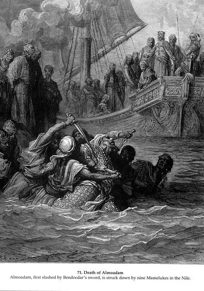 Curator: The image before us is Gustave Dore’s "Battle of Lepanto in 1571," an engraving from 1877, currently held in a Private Collection. Editor: It’s a very dramatic scene. The swirling lines of the waves and the chaos of the battle really convey a sense of turmoil. What strikes you most about the composition? Curator: The dynamism of the line work is indeed notable. The contrast between the density of figures and ships and the open expanse of the sky creates a powerful visual tension. Note how Dore employs diagonal lines throughout – in the masts, the figures’ limbs, even the waves – creating a sense of instability. How does this dynamism affect your reading of the artwork? Editor: It makes the battle feel very immediate and chaotic, almost overwhelming. Are there specific formal elements that suggest that Baroque or Romantic influence? Curator: The strong contrasts in light and shadow, the heightened emotionalism evident in the figures’ gestures, certainly echo Baroque sensibilities, while the vastness of the scene and the focus on nature's power are Romantic traits. The way the scene unfolds, pulling the viewer into the crush of the moment... do you find your eye being directed towards a specific focal point, or is the overall sense one of diffused chaos? Editor: I think the chaos is definitely the point. It is hard to find a single focal point. You’re forced to consider the broader context. Curator: Precisely. And through that very diffusion of focus, Dore conveys not just the battle, but the experience of war. A key point that this artistic rendering delivers. Editor: I see. Thanks, it's helpful to focus on these compositional aspects! Curator: A worthwhile engagement with this dramatic engraving.