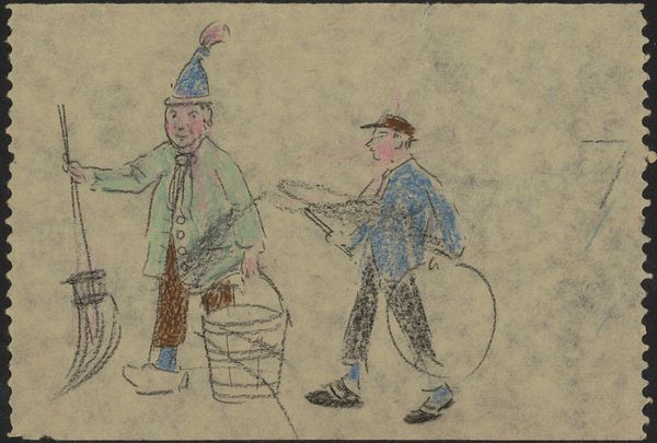 Editor: So, this is “[Photo Collage: Two Men with Mop and Water Bucket]” by Juan Pedro Chabalgoity, from the 1870s or 1880s. It's a photographic collage of two figures doing… well, what seems like cleaning? I'm struck by the almost satirical feel. What's your read on it? Curator: It’s intriguing, isn’t it? I see a commentary on labor and perhaps social class, filtered through a caricatured lens. The use of collage in this period is quite pointed, almost like a protest against conventional portraiture. How does the artist subvert expectations about identity? Editor: I guess by exaggerating features, making them almost clownish, while placing them in working-class garb? It’s a strange juxtaposition. Curator: Exactly. Think about who had access to photography and portraiture at that time. Was this perhaps poking fun at the elite, or perhaps highlighting the plight of the working class? The specific tools and uniforms these figures wear—they speak to particular kinds of labor and likely carried certain social meanings in the context of Montevideo at the time. Editor: So the exaggerated style isn’t just humorous; it's also a commentary. It kind of reminds me of political cartoons… Curator: Precisely! We must consider how photography intersected with the existing traditions of caricature and political satire. The image challenges viewers to consider how different social groups are represented, and who has the power to represent them. What kind of audience was the artist imagining for it? Editor: It does make me wonder about the artist's own position – were they part of that working class, or observing from a distance? Curator: That's the key question, isn't it? Understanding Chabalgoity’s social position would give us a deeper understanding of the collage’s message. Editor: I'll definitely look more into the history of photography and labor representation in Uruguay after this! Curator: Excellent! By engaging with this intersectional history, we can begin to unlock the artwork’s nuanced layers of meaning and consider its legacy within a larger global context.
