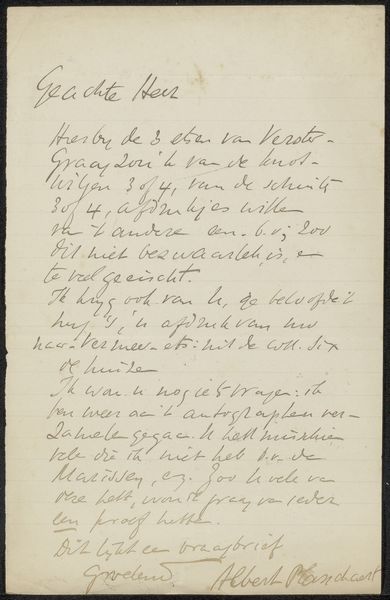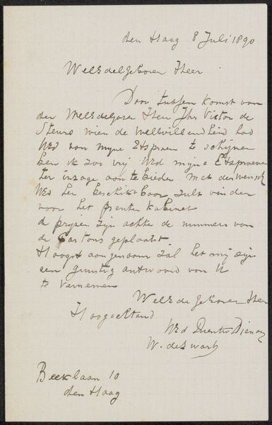 This letter, penned in 1891 by Jan Toorop, reveals more than just a friendly note. It's an insight into the artist’s creative process. The mention of "drawings of the Etch Club" alludes to the camaraderie among artists, reminiscent of ancient guilds passing down knowledge. The very act of writing—carefully forming each letter—echoes the broader human impulse to communicate and record our existence. The signature, a flourish of personal identity, becomes a symbol in itself, marking Toorop’s presence in the annals of art history. Think of how signatures have evolved, from medieval illuminators modestly placing their mark to the bold pronouncements of Renaissance masters. Each stroke carries the weight of ego, skill, and the desire for recognition, a psychological drama played out on parchment. This urge transcends time, resurfacing in street art and digital watermarks, a continuous thread connecting us through the ages.