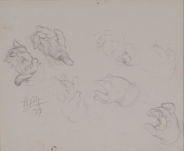 Curator: My eye is drawn to the sheer proliferation of powdered wigs here. Editor: Absolutely. Before us is "Twelve Heads of Men Showing Various Ways of Wearing a Hat," a drawing crafted around 1710 by Bernard Picart, currently residing in the Rijksmuseum. Curator: Right, so immediately I notice these hats aren't just functional. They're practically characters in themselves! They convey so much about status and conformity, even the slight variations tell a whole story. Editor: Yes, each head presents a different micro-performance of identity. It reminds me of that saying, "Clothes make the man." It seems intensely literal here, a semiotic game played out across each tilt and flourish. The hat as a cultural signifier. Curator: Definitely! And look at the baroque sensibility in those swirling lines—all that ornate hair. Each man a carefully constructed facade. There's this almost theatrical sense to each portrayal, wouldn't you agree? Editor: I do! And Picart really captures that Baroque theatricality and excess. Also, do you notice how controlled, how precise the strokes are? It almost seems like a study or preparatory work of some kind. The ink lines almost give the effect of meticulously planned chaos. Curator: Interesting. The image has a real feeling of the 'ancien regime' on the verge of massive change. I wonder if there's an intentional nod here to how these elite displays will eventually appear ridiculous. Editor: A visual prelude to revolution! Perhaps. Anyway, these minute details bring the piece alive for me. A little insight into a bygone world. Curator: I couldn't agree more.