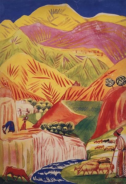 Albert Bloch created "The Garden of Asses II" using expressive brushstrokes and a palette of earthy tones. The composition is dense, featuring multiple figures of donkeys scattered within a landscape that is as much emotional terrain as it is physical space. Bloch employs a fractured, almost Cubist-like approach to form, breaking down the donkeys and the surrounding landscape into angular shapes. This fragmentation destabilizes the conventional representation, challenging our perceptions of space and perspective. The layering of colors and forms creates a sense of depth, yet the lack of clear spatial organization emphasizes the artwork's symbolic dimension. The title itself prompts a semiotic reading, inviting us to consider the donkey as a signifier. Here, the repetitive presence of donkeys may challenge fixed meanings, encouraging us to question conventional associations. "The Garden of Asses II" functions as a site of ongoing interpretation, reflecting broader philosophical concerns.