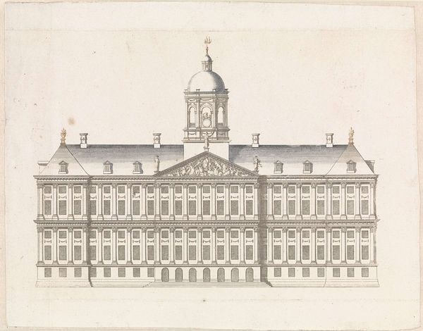 Dancker Danckerts's rendering of the rear and side facade of the Town Hall on the Dam, was created sometime between 1634 and 1666. Its architectural detail and symmetry convey a sense of civic pride and order. Danckerts masterfully employs line and form to articulate the building's structure. The rhythmic repetition of windows and the clear demarcation of the building's stories create a visually appealing pattern. The artist's meticulous attention to proportion reflects the architectural principles of the time, emphasizing balance and harmony. The steeple is strategically placed to serve as the focal point and punctuate the skyline. This image can be seen as a semiotic representation of Amsterdam's identity. The Town Hall is not just a building, but also a symbol of power, governance, and collective identity, all communicated through line, space, and form.