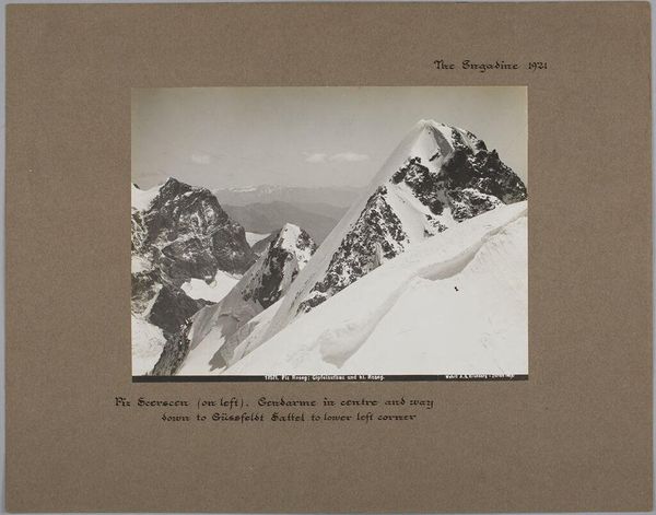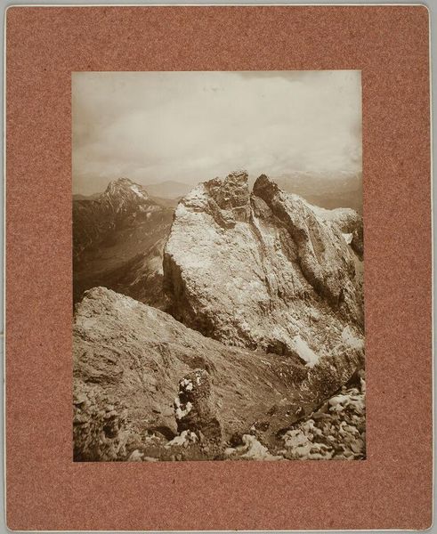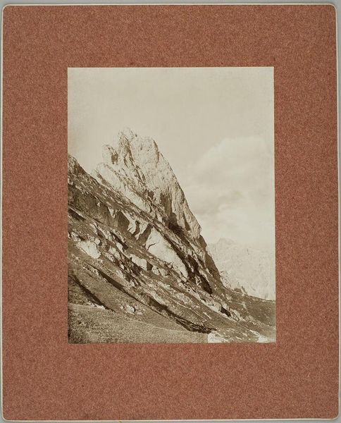 Curator: Let's discuss this striking gelatin silver print, taken in 1936, entitled "Landschap: bergen bij de Skagit River, Washington." What strikes you first, Editor? Editor: Immediately? The stark grandeur, almost monochrome, yet with this quiet intimacy. It feels lonely, yet immense; the bridge cuts through it but nature will win here, that's for sure! It pulls you into the silence of those mountains. Curator: Yes, it’s interesting to see the inclusion of the industrial—the bridge, the wires—juxtaposed with this vast wilderness. Wouter Cool captured a tension in the landscape. I'm curious about the paper choice as a kind of visual language of an artwork Editor: It feels like the paper itself adds to the drama; it isn't pristine or perfect, the imperfections enhance the sense of the past—the fleeting present caught by the lens. Almost ghostly? As if we’re trespassing in the landscape. Curator: Exactly! Cool was playing with the social and political context. He’s subtly reminding us about labor and the expansion of infrastructure. The consumption of the land for industrial and technological advancements. And this is achieved by highlighting, using different kind of papers that brings a great deal of importance Editor: A quiet, yet biting commentary then. Even those objects I see close up at the lower left corner have an eery feeling of almost an alien civilization as an introduction or welcome Curator: Precisely. The photographic medium, and the gelatin silver print itself, becomes integral to expressing this moment in the relationship between the built environment and the environment we inherit. Editor: Thinking about Cool’s framing – he's carefully considering nature but almost as stage backdrop. Are those even streetlights?! Curator: A possible and interesting interpreation of the landscape and the time when this piece was captured in. Well, that’s a lot to consider, about the place. Thank you for this chat Editor: Thank you, an image, well chosen can indeed say so many things if you simply slow down a moment.