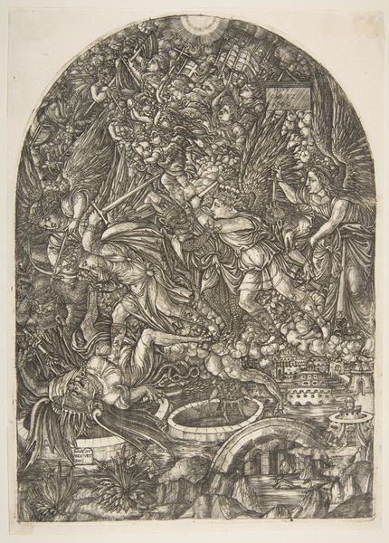 This woodcut, "Adoration of the Shepherds", was created by Christoffel van Sichem II. Observe how light emanates from the heavens, illuminating the newborn Christ, a beacon of hope. Angels hover above, bearing witness to the divine event, their presence echoing ancient motifs of celestial messengers. Note the shepherds, their postures conveying awe and reverence. This humility, a visual echo of poses found in classical depictions of supplication, carries through Renaissance art, where similar gestures express devotion and piety. The swaddling of the infant is a motif that resurfaces through Christian art, symbolizing not only vulnerability but also the binding of the divine to the earthly realm. This act transcends the immediate scene, linking to collective memory and the human desire for protection, reminiscent of how mothers have swaddled their children throughout time. Each element works together, engaging viewers on a subconscious level, reminding us of our shared emotional and psychological landscape. It's fascinating how symbols evolve, taking on new meanings while still resonating with our deepest emotions.