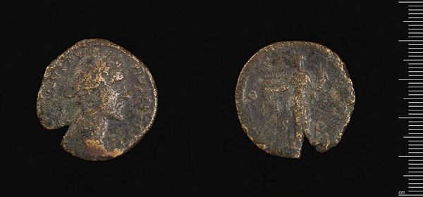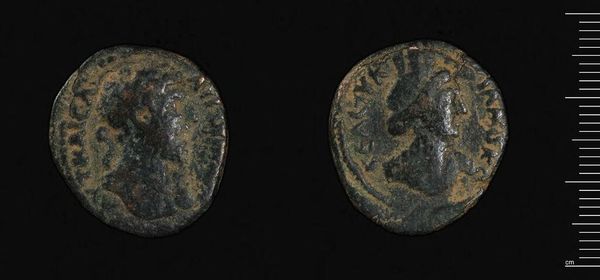 Editor: So, this object is a "Countermarked coin of Valerian?" It's undated, made by Valerian I, and it seems to be made of bronze. It's interesting how worn down it is. What can we learn from it? Curator: The wear and tear itself is significant. It speaks to the coin's circulation, its life as a material object passed between hands, a tangible representation of economic and social exchange. Editor: So, the coin's materiality shows its journey through history? Curator: Precisely. Each scratch, each mark, tells a story of production, distribution, and ultimately, consumption. The countermarking itself signifies a reevaluation, a further layer of meaning imposed on the original object. Editor: That’s a really interesting perspective. I never thought of a coin that way! Curator: Considering art as a material process really opens up how we interpret its meaning.