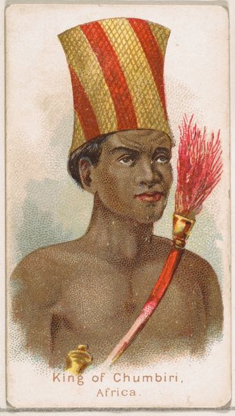 This small chromolithograph of a Nubian sword was produced by Allen & Ginter, a cigarette company in Richmond, Virginia, as part of their "Arms of All Nations" series. These cards, like many from this era, offer a glimpse into the cultural and social landscape of the late 19th century United States. They were designed to be collected, traded, and stored in albums, turning them into vehicles for promoting the company's brand while subtly shaping public perceptions of different cultures. The image presents a romanticized vision of Nubia, a historical region encompassing parts of modern-day Sudan and Egypt. Note the figure of the Nubian warrior, complete with sword and shield, is juxtaposed with a desert landscape and a camel. The historical context is crucial here: this card appeared at a time when European and American imperial powers were actively engaged in colonizing Africa. To fully grasp the nuances of this image, we can turn to sources such as historical surveys, postcolonial theory, and studies of the tobacco industry. By doing so, we can better understand the ways in which art is always embedded in its own social and institutional context.