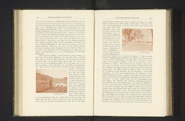 Curator: This image, "Duinlandschap," dating from before 1898, is presented as a lithograph within a printed publication. What strikes you about it? Editor: Well, initially, there’s this immediate impression of stillness and muted tones. The composition is interesting with that path winding into what seems to be the core of the landscape, and the bare trees give a distinct sense of isolation. Curator: The photograph used for the lithograph, potentially by P. Ickx, invites us to consider notions of romanticism. Its representation of nature, seemingly untouched, reflects an interesting commentary on the cultural value placed on landscapes at the time. How does this sit within broader colonial narratives and the representation of "virgin" territories ripe for exploitation? Editor: The materiality certainly reinforces this reading. Think about the labor involved in creating both the photograph and then reproducing it as a lithograph. It would have been quite the production involving different artisans. Does the photomechanical process speak to an increasing standardization of artistic creation, somewhat like the assembly line? Curator: Absolutely, we have to unpack who this imagery was targeted towards and what stories it reinforced about the human relationship to land and notions of progress. In this way we have to ask how gender and race shaped access to nature at the turn of the century, both as image producers and audiences, shaping the dominant visual discourse. Editor: It really makes you think about the relationship between the means of production, consumption, and how these depictions played a role in a certain ideology around progress. What was it like to actually visit that place? Were you a person able to own the representation or the place? Curator: By centering class and privilege, what we may interpret as the serene pastoral scene speaks directly to the economic disparity defining Belgium. So I’m struck at how this image prompts broader discussions about place, ownership and the mediation of experience through visual culture. Editor: I think that is such a fitting reflection that reminds us how much an analysis into materiality and production can provide insight into even more personal and philosophical inquiries of identity and lived reality.