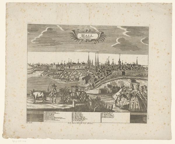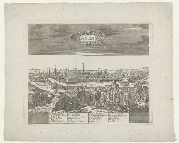 This is an engraving of Braunschweig, by an anonymous artist. It’s a meticulously detailed depiction of the city, rendered almost entirely in monochrome. The structure of the artwork is sharply divided into horizontal registers, with the city skyline dominating the upper half. The foreground is filled with geometric arrangements, possibly gardens or fortifications, that lead the eye towards the urban landscape. Note how the fine lines create a stark contrast between light and shadow, giving form to the architectural details. Consider how this formal precision might reflect the values of its time, emphasizing order and rationality through its visual language. The print’s formal clarity invites a semiotic reading. The cityscape can be seen as a system of signs, with each building and structure contributing to a larger narrative about urban space and societal organization. The visual elements collectively construct Braunschweig as a place of order, power, and architectural achievement.
