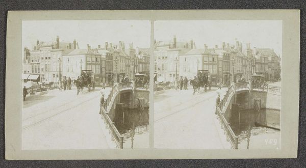 Editor: Here we have Percy Byron's "Industrial Problems, Strikes: United States. New York. Brooklyn. Street Railway Strike," a photograph mounted on board. The sepia tone and the two-part composition give it a documentary feel. What strikes you about this work? Curator: The composition is divided, yet unified by the narrative. On the left, the single figure disrupts the linear expectation of the tracks; on the right, the crowd becomes a mass, a formal element in itself. Consider how light and shadow sculpt the forms, emphasizing the geometry of the architecture. Editor: So, you see the formal arrangement as key to understanding the social narrative? Curator: Precisely. The artist directs our gaze through carefully orchestrated visual cues, thus prompting us to ponder the underlying structures of power at play in this industrial landscape. Editor: I see now how the visual elements reinforce the theme of disruption and order. Thanks for the insight!