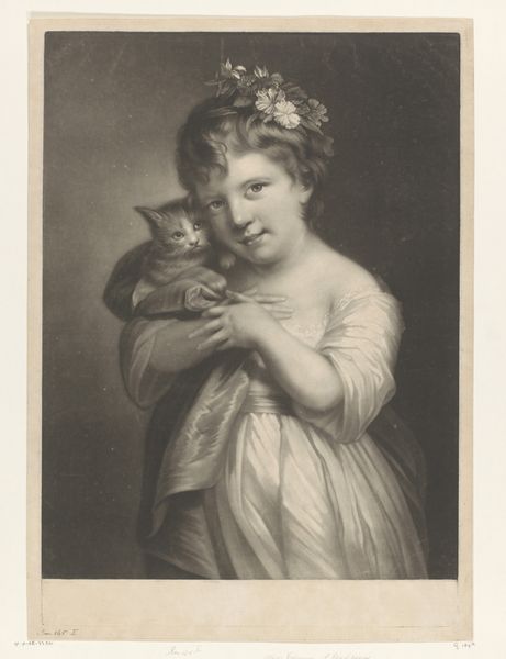 This mezzotint portrait by James McArdell shows an unknown woman tenderly holding a cat. The prominent symbol here is the cat itself, steeped in a rich, complex history across cultures. In ancient Egypt, cats were revered, embodying grace and protection, often associated with goddesses. Yet, fast forward to the Middle Ages in Europe, and we see the cat, particularly the black cat, demonized. This shift highlights the fluidity of symbols and how their meanings can invert over time. The black cat became a symbol of witchcraft and ill omen, reflecting deep-seated fears and superstitions. Here, the woman's gentle embrace suggests a return to the cat as a symbol of domesticity and comfort, moving away from the darker associations. But does the shadow of those older superstitions still linger? It seems that the image may tap into our collective memory, evoking both warmth and a subtle sense of unease. It shows how emotional and psychological connotations can persist, even as overt meanings evolve.