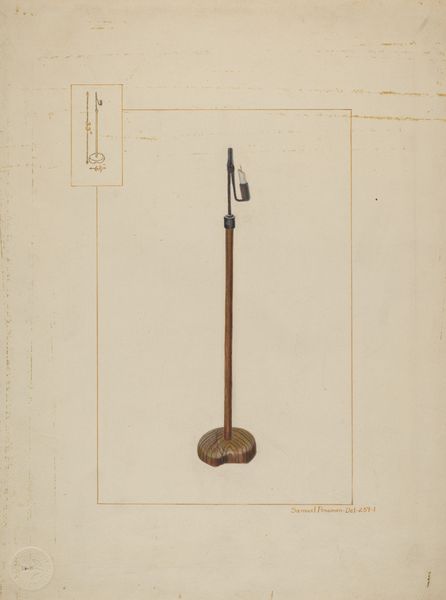 Editor: We're looking at "Pipe," a colored pencil drawing on paper from around 1936 by Mabel Ritter. The pipe itself is quite ornate, even a bit unsettling with those human heads carved into it. What strikes you when you look at this, in terms of historical context or possible commentary? Curator: This image immediately makes me consider the fraught history of smoking and representation. Beyond being a simple drawing, it portrays a crafted object. The carved heads, one in profile and one forming the bowl itself, place this pipe squarely within a colonial or early American aesthetic, recalling images of the founding fathers. Editor: So, the pipe isn't just a pipe; it's evoking something about American history and perhaps even power dynamics? Curator: Precisely. The act of smoking has complex ties to colonialism, trade, and ultimately, exploitation. Who had access to these luxurious, ornamental items, and at what cost? What narratives of nationhood are embedded in this object and in its depiction here? Notice too how the inscription reads 'New York.' Is this asserting some claim to a particular heritage, or pointing towards the site of so much global exchange? Editor: It's interesting that a drawing of a simple pipe opens up such complex questions of cultural and historical meaning. I hadn't considered how an object so tied to pleasure could carry such a heavy burden. Curator: That's often the case! Objects aren't neutral. Examining them through a critical lens reveals the power structures and social dynamics they reflect and reinforce. Hopefully viewers now have some added tools to observe ordinary looking objects in the future, in an extraordinary way.