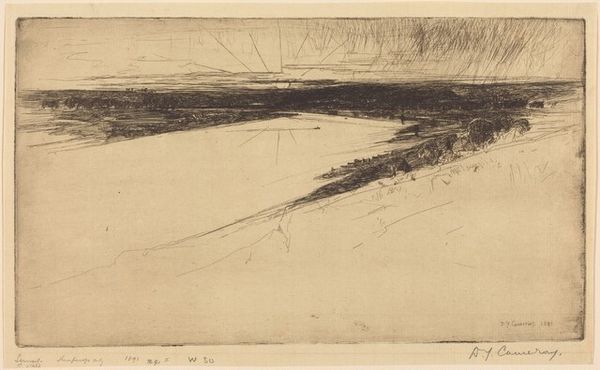Kerr Eby made this print of Salt Marshes using etching, and it’s all about the touch. Look closely, and you'll see how the magic lies in the details. The hatching marks build up to create the cloudy sky, giving real depth to the atmosphere. Then down below there are little pauses and hesitations to delineate the water, and the plants on the shore. The physical labor of the printmaking process is so evident, that the image becomes a space of time. It’s also about the way the piece evokes the work of artists like Whistler, who showed us how the everyday world can be a source of endless fascination.