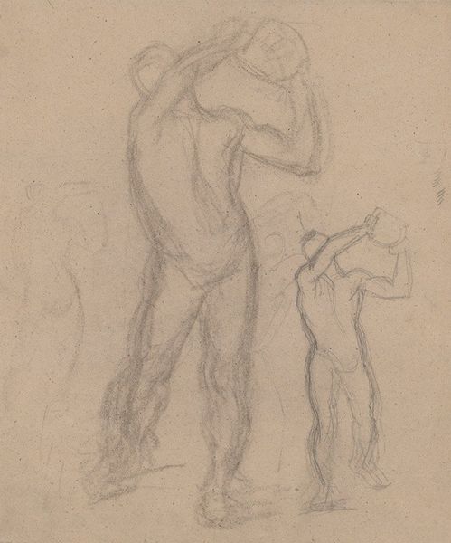 George Hendrik Breitner made these figure studies using charcoal on paper. Breitner was a master of capturing everyday life, and here, he uses the immediacy of charcoal to sketch figures with quick, confident strokes. The grainy texture of the charcoal lends itself perfectly to the fleeting, transient moments he depicts. You can almost feel the artist's hand moving rapidly across the paper, capturing the essence of the figures. The use of this accessible and relatively inexpensive material speaks to Breitner's commitment to portraying the lives of ordinary people. Charcoal, unlike oil paint, doesn't allow for much correction. This directness forces the artist to commit to each line, resulting in a raw, honest portrayal. It’s a medium that democratizes art making, and allows for the creation of many works, shifting away from the idea of a singular masterpiece towards a serial production of images. It reminds us that art doesn't always require precious materials or laborious techniques, but can be found in the simple act of observing and recording the world around us.