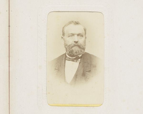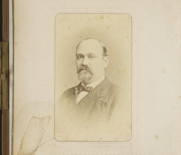 This is Eugène Maurice’s ‘Portret van een man’, a late nineteenth-century portrait, crafted through the lens of early photography. Consider how photography democratized portraiture, extending it beyond the elite. Here, the sitter's formal attire—the dark suit and bow tie—speaks to aspirations of middle-class respectability. Yet, the photographic process itself, with its long exposure times, often resulted in a certain stiffness, a mask-like quality. This raises questions about representation, about how identity is constructed and performed, both by the sitter and by the photographer. We might also reflect on the absence of context. Who was this man? What was his story? Photography promises a kind of truth, a capturing of reality, but what truths are revealed, and what remain hidden? Perhaps it reminds us that every image, every portrait, is a negotiation between visibility and invisibility, a dance between revelation and concealment.
