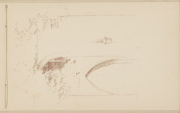Bramine Hubrecht made this drawing, "Figures in an Alley with Stone Arches," using graphite on paper. Hubrecht lived during a time when women artists were gaining more recognition, yet often faced limitations in their training and opportunities. This sketch gives us a glimpse into her world and perhaps even her emotional state. The alley, with its looming stone arches and indistinct figures, may represent a space of transition and obscurity. Hubrecht's choice of subject is striking. By focusing on an unadorned urban space, she diverges from traditional representations which tend to focus on more idyllic or domestic settings. The figures walking through the arches evoke a sense of anonymity, which could be interpreted as a comment on the experience of individuals navigating the rapidly changing urban environment of the late 19th century. The sketch is emotionally evocative. It resonates with the feelings of being unseen, yet present, within the urban landscape.
