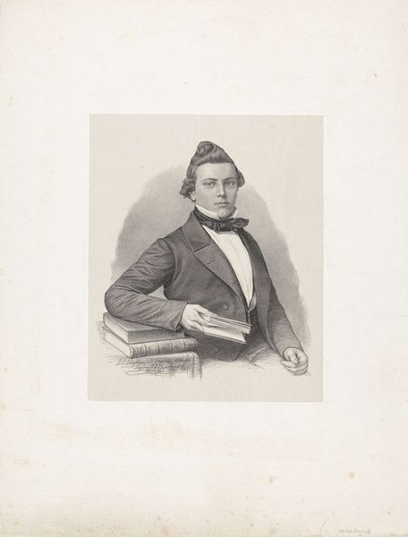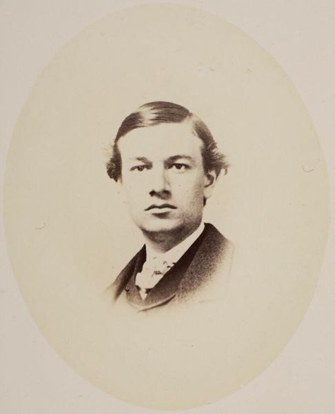 Editor: This is an undated photograph by George Kendall Warren, simply titled "Untitled (unidentified sitter)." It feels quite formal, yet the sitter's gaze is somewhat averted. What strikes you about the composition? Curator: The oval format immediately focuses our attention. Notice how Warren uses a limited tonal range, almost monochromatic. The subtle gradations emphasize the sitter's features and the texture of his clothing. Editor: So, the lack of vibrant color is actually a strength here? Curator: Precisely. The formal constraints—the pose, the lighting, the limited palette—all work together to create a sense of timelessness and quiet dignity. It’s a study in form and subtle variation. Editor: I see that now; it’s a powerful effect. Curator: Indeed. The composition itself speaks volumes, even without knowing the sitter's identity or the specific date. Editor: I learned to look beyond the subject and more at the artistic intention!