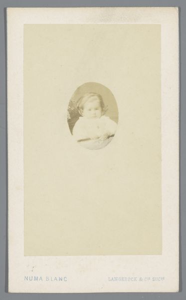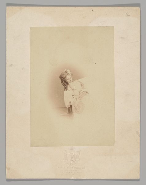 Curator: Walter L. Colls’s photograph, *Portret van een onbekend kind met een pauwenveer* or *Portrait of an unknown child with a peacock feather*, predates 1896, a sterling example of pictorialist portraiture. My initial impression is one of both tenderness and formality, a snapshot attempting something more enduring. What do you see? Editor: The subdued tones lend it a certain gravitas, yes, a conscious artistry meant to elevate the sitter, despite the obvious simplicity of the image itself. I see how photographic portraiture, like painting before it, began shaping a bourgeois self-image in the late 19th century. Curator: Indeed, and I’m struck by the contrast of the young girl’s ruffled dress against the deeper symbolism held within the peacock feather. Peacocks have historically signified vanity, pride, but also resurrection, themes woven through Christian iconography and adopted into secular portraiture. This juxtaposition asks us, who are we representing? Editor: A carefully constructed performance, as usual. This wasn’t just about capturing a likeness. Photography offered then, as it does now, the promise of constructing an ideal, often one reflective of a sitter’s social aspirations or desires. Look at the very specific class marker implied by a portrait featuring such an exotic item like this bird feather. Curator: Precisely. But let's not underestimate the cultural currency invested in childhood innocence at that time, the way children stood as a symbolic repository for societal values. Perhaps the feather softens a sense of the gravity of that time. It feels like protection, a charm even, against whatever corruption lay ahead. Editor: It does remind me how children have historically served as vessels onto which we project cultural anxieties and hopes. So, is this photograph about celebrating a child or displaying cultural ideals? Probably both at once. Curator: Perhaps that's the perennial tension of the portrait: How do we balance public projection and private persona? The tension here remains quite vibrant today. Editor: Absolutely. Seeing this today offers such a powerful sense of historical self-consciousness and helps unpack just what images can represent about us as both subjects and viewers.