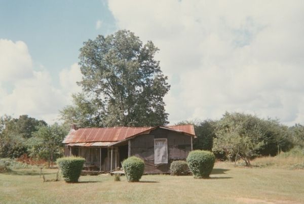 Editor: So, here we have William Christenberry’s "House, Pickensville, Alabama" from 1964. It’s a photograph, and it really strikes me as haunting. There's something about the way the house is framed by the overgrown vegetation that gives it a sense of abandonment. What do you see in this piece, particularly regarding the symbolism? Curator: Christenberry consistently returned to the same vernacular subjects throughout his career, capturing what might be considered mundane with intentionality. This repetition becomes symbolic. What do you think the recurrence suggests about the artist's relationship to this place, this South? Editor: I suppose the return suggests that it’s personal, a place filled with specific meaning that he feels compelled to explore, revisit… almost as if he's working through something. It feels like memory made visual. Curator: Precisely. And what kind of memory do you think it evokes, given the state of decay we see? Consider how the visual elements work together. The dilapidated structure, shrouded by the encroaching wilderness... How do those elements speak? Editor: They speak to decline, to a certain elegiac quality. The columns suggest grandeur, a past that's slipping away. The overgrown plants almost feel like nature reclaiming the space. It evokes a sense of loss. Curator: Loss is powerful. Decay signifies the inevitable passage of time, challenging ideals of permanence and progress, and ultimately mirroring our own mortality. Now, thinking about cultural memory... How might this single house in Alabama represent broader historical narratives? Editor: I imagine this represents a kind of larger Southern narrative of faded glory, the remnants of an antebellum past, confronted by the present and an uncertain future. It makes me think about the weight of history. Curator: And the enduring power of images to carry that weight across generations. What I appreciate most is the subtle encoding of these grand themes into familiar views of small-town main street America, which enables these potent relics of visual experience to still speak eloquently today. Editor: I'm beginning to see this house not just as a physical structure but as a symbol, a vessel carrying layers of cultural memory and individual meaning. Thanks for the insight.