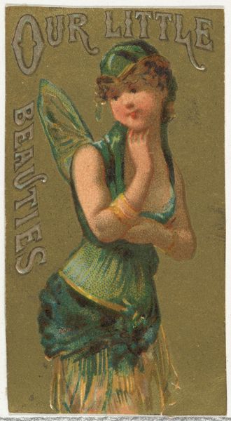 Editor: This is "From the Girls and Children series (N58) promoting Our Little Beauties Cigarettes for Allen & Ginter brand tobacco products," a print from 1887. I find it quite strange that children and beauty are associated with cigarettes. What are your initial thoughts? Curator: The use of children and the concept of beauty intertwined with tobacco points to a calculated effort to normalize and even glamorize cigarette smoking in that era. What symbols or imagery stand out to you within the piece that support or challenge this interpretation? Editor: Well, she’s holding what looks like a cigarette. The word “beauties” gives me this impression, and that she's trying to emulate adulthood, a desire every child seems to harbor at some point in their development. Curator: Precisely! It is not accidental, I believe. There’s a calculated association with adulthood and glamour, yes, but perhaps something deeper. Consider how innocence is deployed as a powerful persuasive tool. How do the visual cues, such as her attire and pose, contribute to the intended message? Editor: She’s on a bed or a sofa, very casual, but it's a corset and she has a mature make up, maybe trying to make smoking seem sophisticated or, perhaps, just part of everyday life, a tradition worth passing on. The manufacturer appeals to people through their affection and protectiveness of kids, saying “If a ‘Little Beauty’ can enjoy cigarettes, so can you!” Curator: Absolutely. Think of it as visual indoctrination; you have pinpointed one piece of cultural history where there’s the deliberate visual imprinting of dangerous associations into the cultural memory of potential future consumers. A chilling reminder of art's power to shape perceptions. Editor: Wow, I never thought about it that way. This is an excellent piece. Curator: And quite effective in its own, perverse way. It highlights that every image, no matter how seemingly benign, is potentially loaded with symbolic and ideological weight.